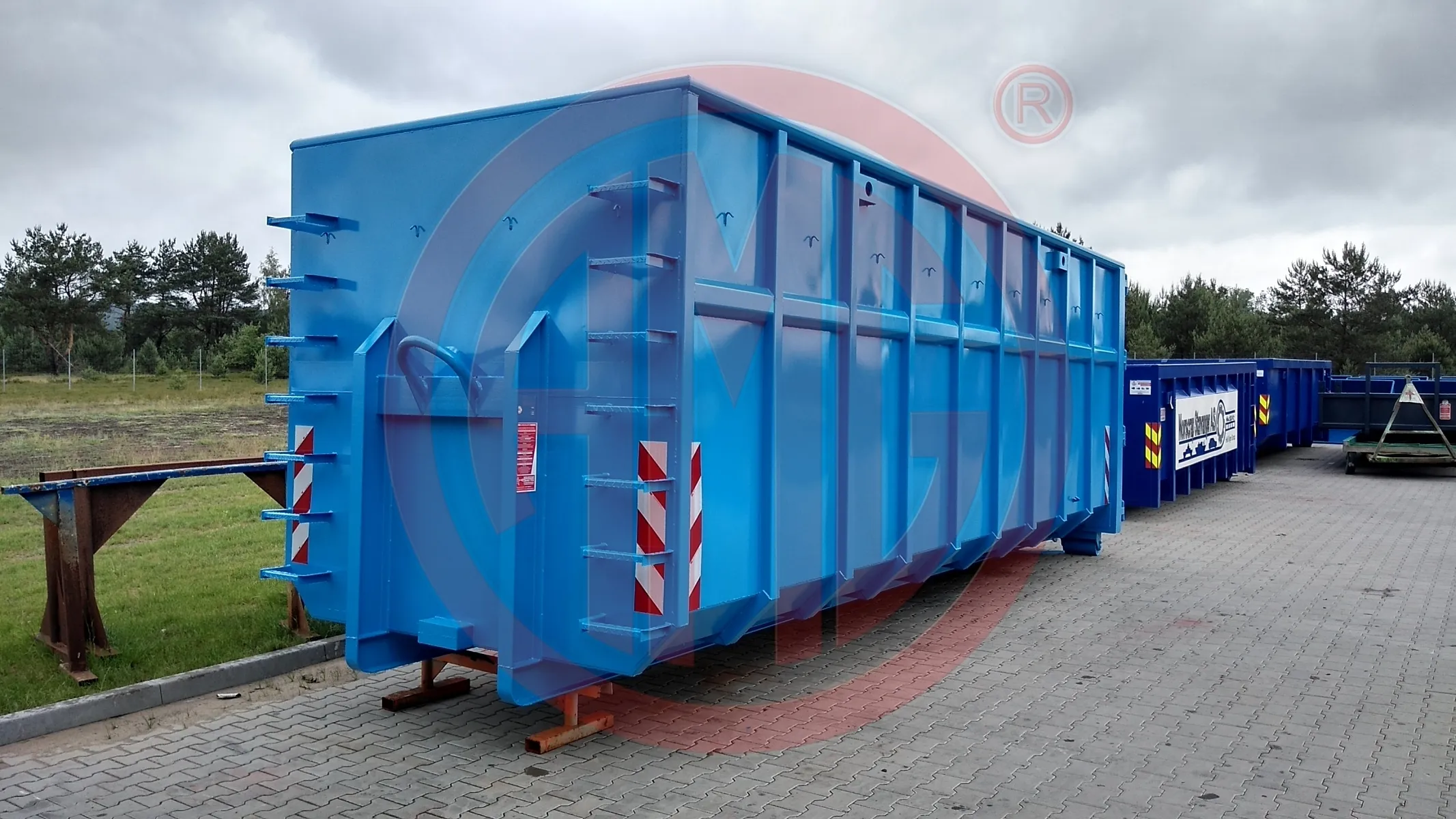 - Kontener wyposażony w zaczepy do zakładania plandeki